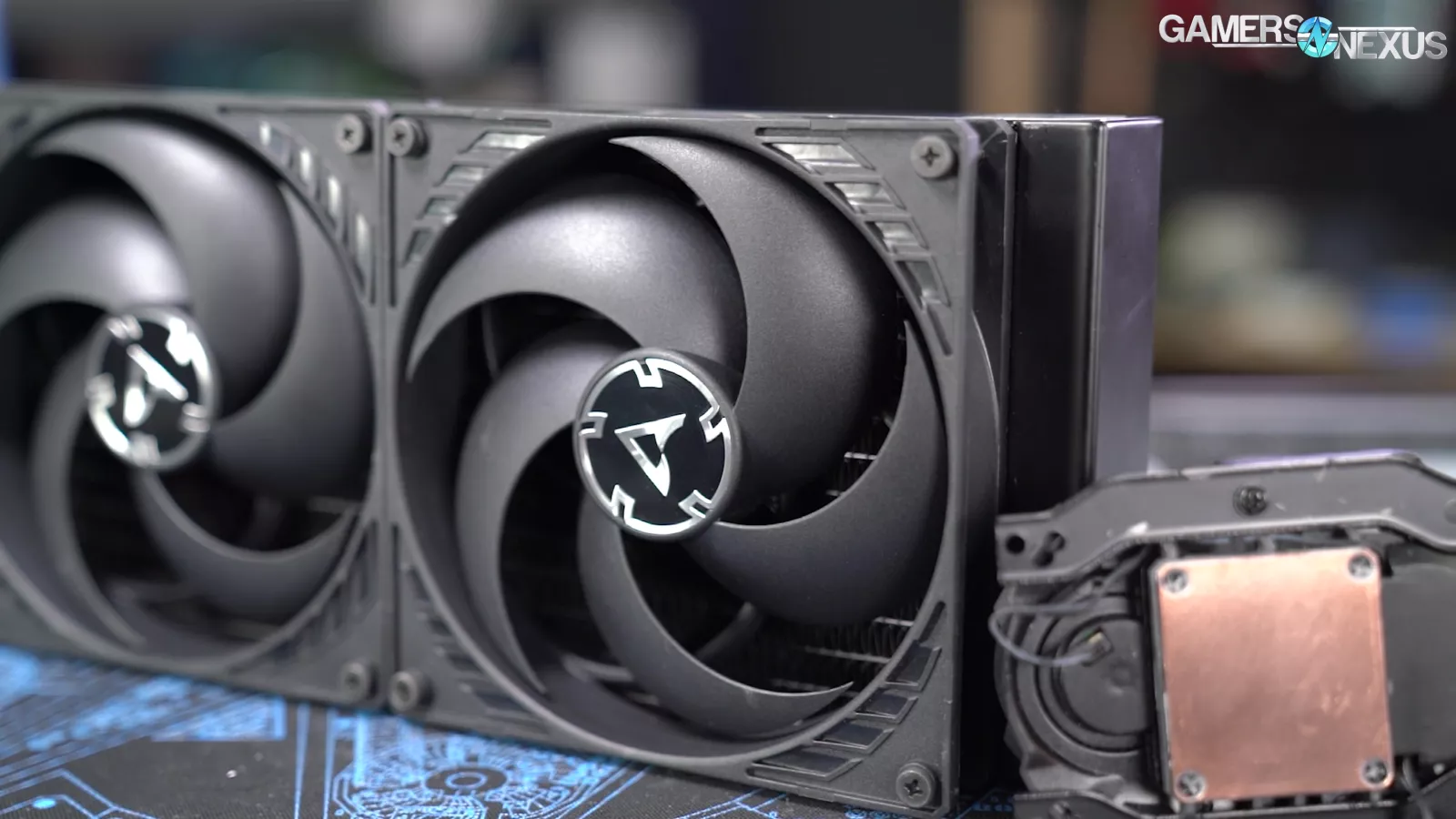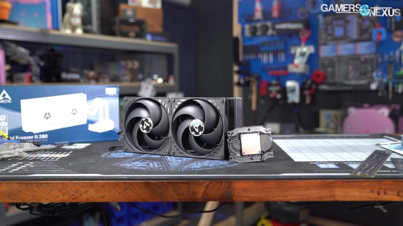 Today’s review has been the most-requested review from our commenters for about 6 months now, and it’s not even a piece of silicon. The Arctic Liquid Freezer II series has gotten heavy community interest because of high reported performance in the enthusiast forum user base. We wanted to look at it with our new testing methodology that we started developing in the last half of 2019 (when the Liquid Freezer came out) to see how the Liquid Freezer performs against incumbents, including the NZXT Kraken X62 (similar to the X63 we reviewed), the Noctua NH-D15, and a growing list of others. The Liquid Freezer’s biggest marketing point, currently wedged in between being a gimmick and a useful feature, is its included VRM fan on the coldplate housing. Our review includes benchmarks of VRM thermal performance with and without this fan, tested in A/B fashion, and also tests surface levelness, CPU core thermals on the 3950X and 3800X at 200W and 123W, noise tests, and time-to-max temperature.