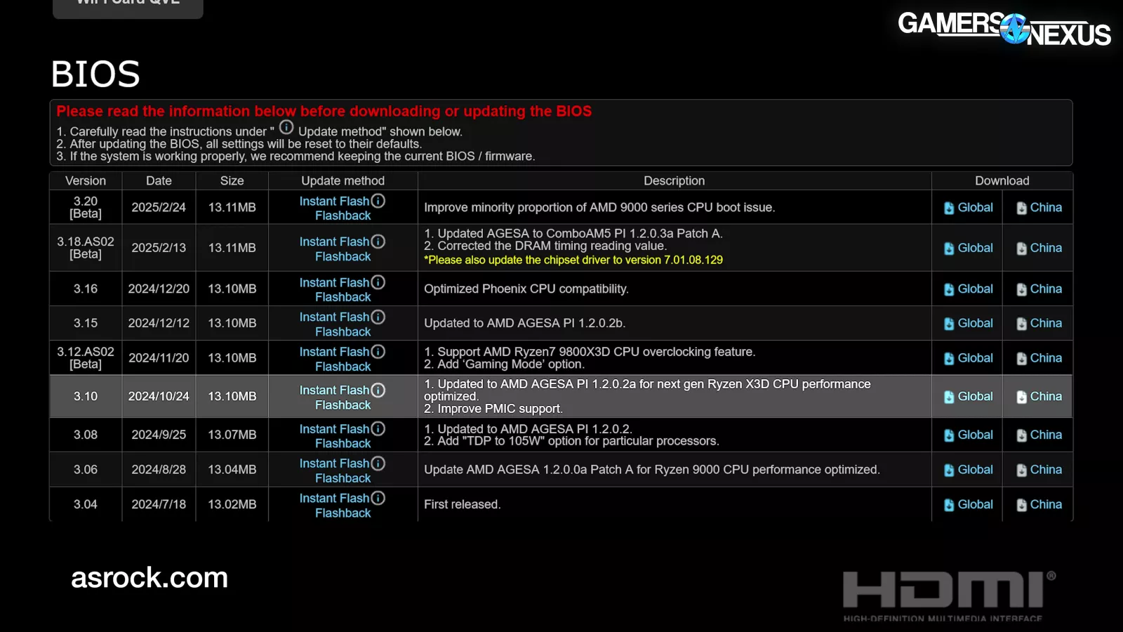 On February 24th, ASRock released a beta BIOS 3.20 with the description stating, “Improve minority proportion of AMD 9000 series CPU boot issue.” We assume this was the same BIOS previously sent out to those select users.