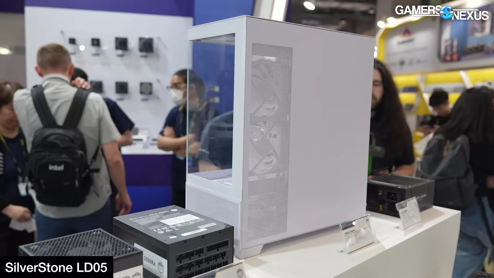 The company also had more contemporary cases, like the LD05 fishtank case. The LD05 has heavily ventilated lower panels and a ventilated side panel to get air into the system. This is more of a traditional design by today’s standards. SilverStone plans to ship it with 3x 120 ARGB fans included and wants to hit $100, depending on tariffs, for a budget-focused airflow case with the glass look to it.