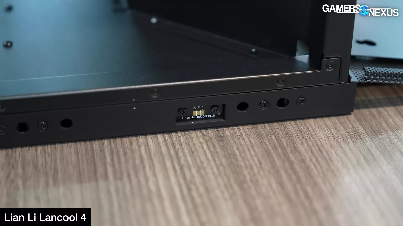 A pogo pin setup allows the front panel to transfer power without use of a cable, followed by a mix of painted glass and plastic covers to hide cables daisy chaining the fans. Lian Li is considering including 3x 140x30mm front fans and 3x 120x25 side fans, with a pricing target at $130 including all 6 of these fans. This would be extremely competitive if they can do it. Lian Li has committed on camera with us to a 5-year warranty for the fans.