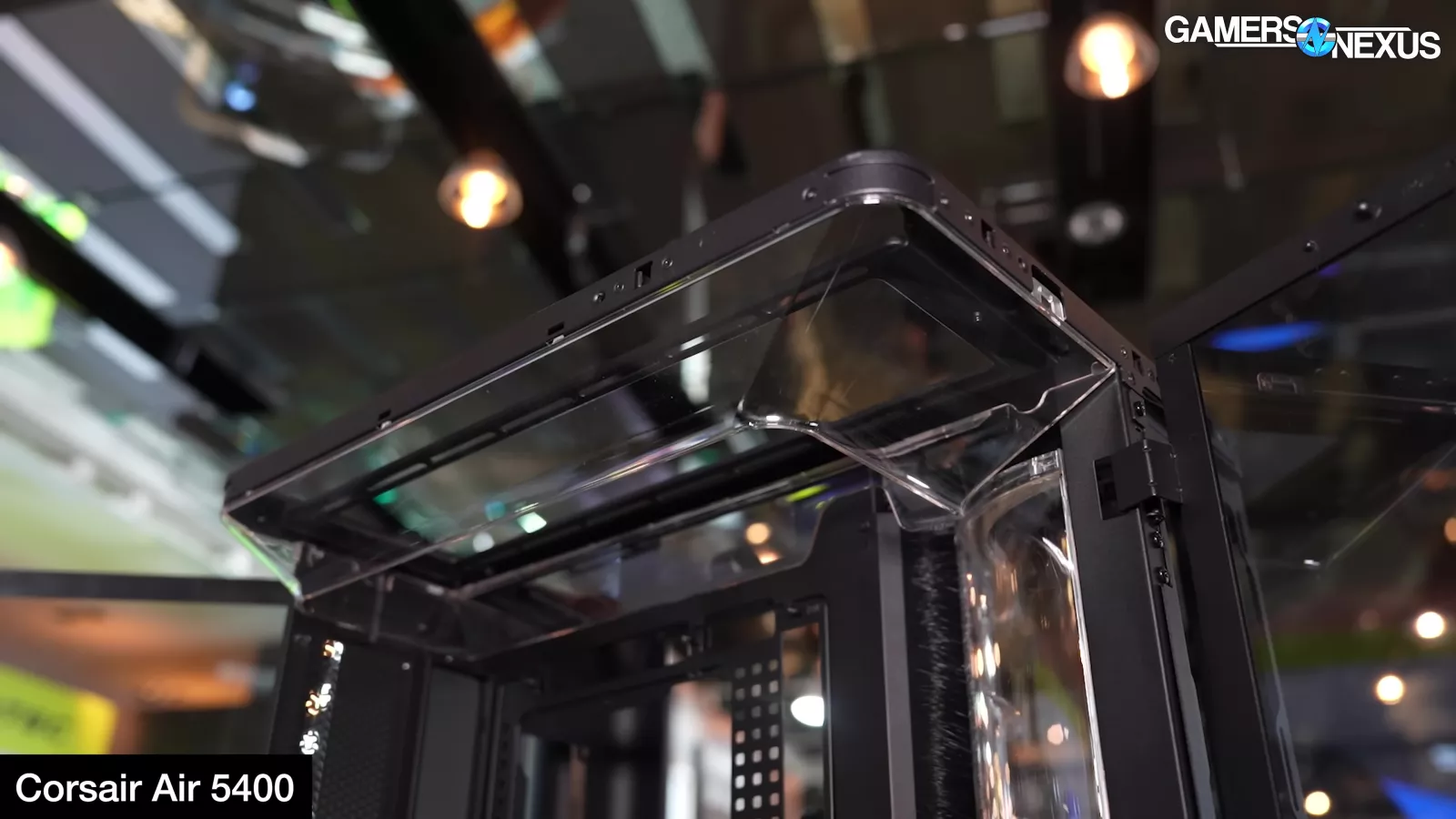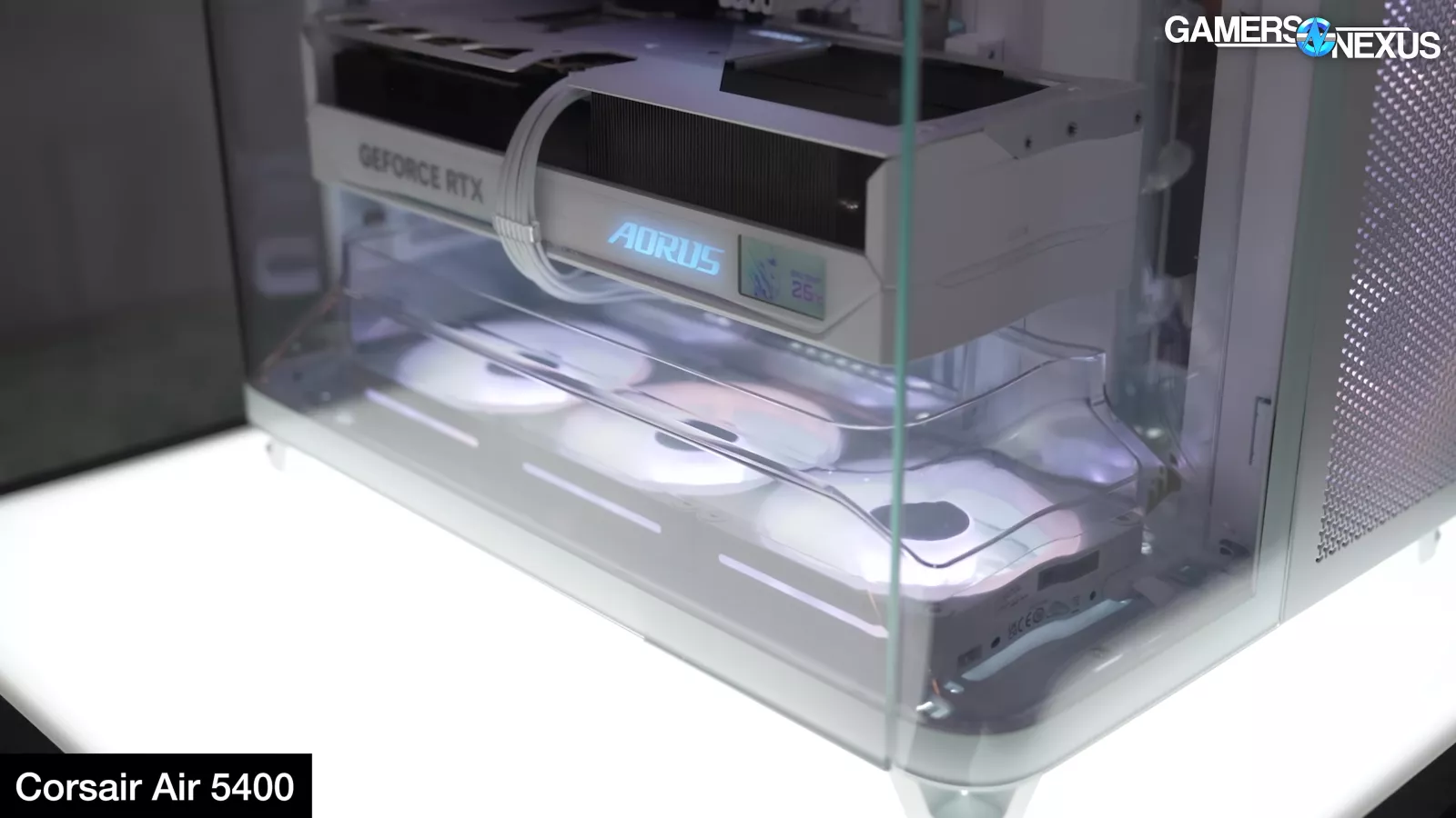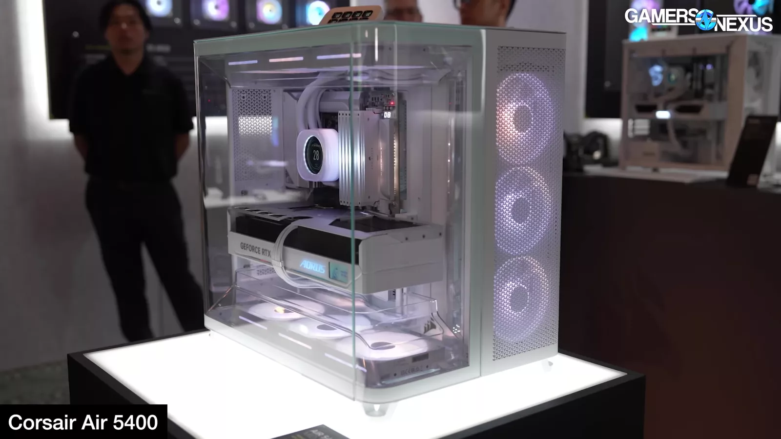 Corsair showed its new FRAME 5000D with LCD panel, its Air 5400 with effectively three chambers that completely isolate front radiator air from the rest of the system, and it had a prototype FRAME 4000D with a power board from Singularity PCs.
