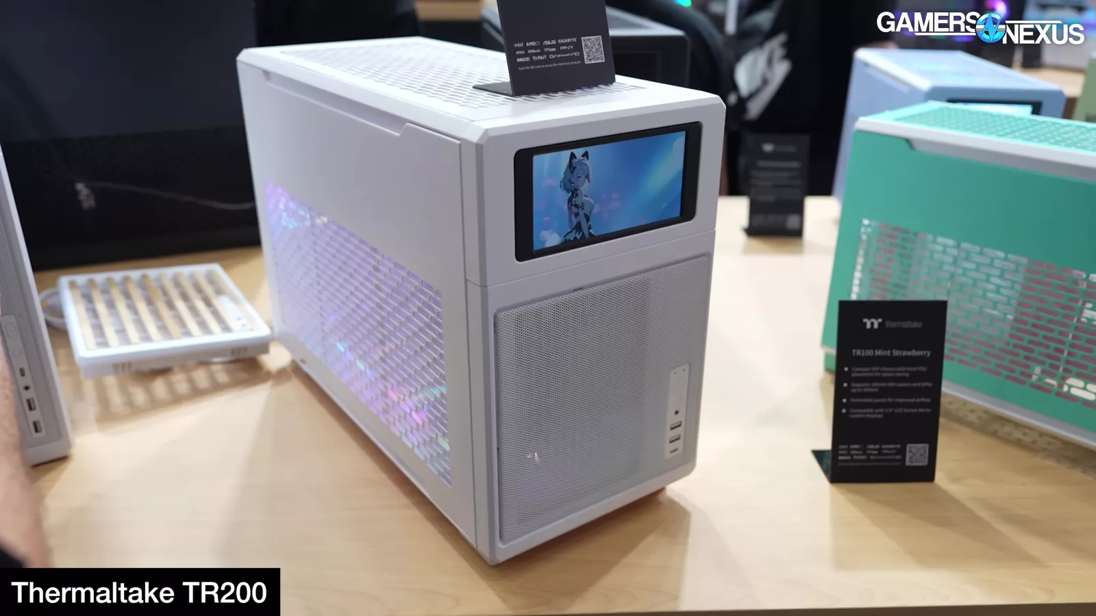 Lian Li had a few honorable mentions at the show: Its O11 Mini V2 made an appearance and manages to cram an ATX power supply into the case by punching out space in the side panel. The Mini V2 should be $90 without fans and $100 with 5x 120 fans. The Dan Case B4 was also an interesting showing, mostly for its ability to attach feet and switch to a much higher volume vertical orientation. It makes use of the space provided by the feet by also including a radiator extension chamber to support a 360mm radiator on the side. More interestingly to us, the Vector 100 and Vector 100 Mini cases are extremely cheap. The Vector 100 Mini micro-ATX case is intended to sell for $45 without fans, making it a direct competitor to Thermalright’s new mATX case.