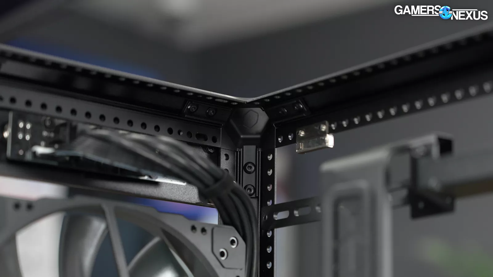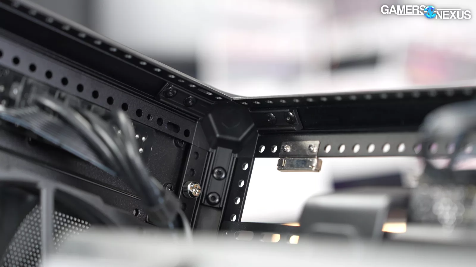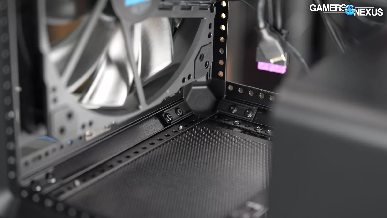 It’s assembled of just corners and columns, which allows modularity; although, it was a letdown that the chassis itself is riveted together at the corners in a way that’s restrictive. The build quality is excellent and, although (like any case) it falls short in some areas, we like where this case series is going.