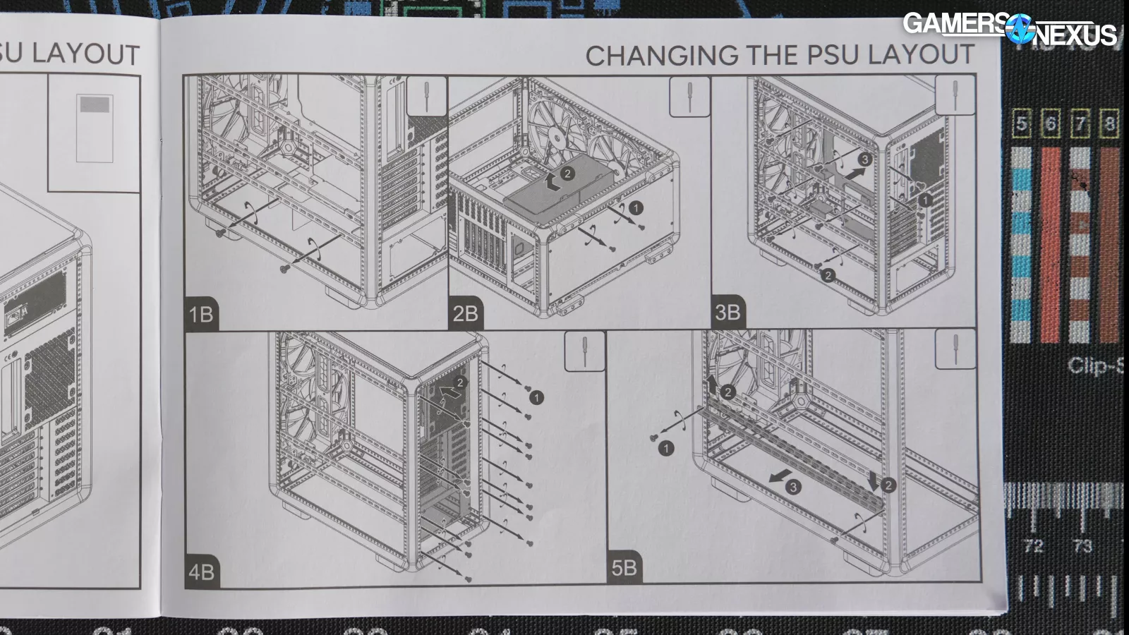 The manual describes a 17-step process for moving the PSU to the top of the case, and then a further 10 steps for inverting the whole case, not including the optional 7 steps for inverting the front I/O. It's not as bad as the Dark Base Pro 900 (read our review), but unbuilding the system, inverting the case for the first time, rebuilding, and then running tests took most of a work day.