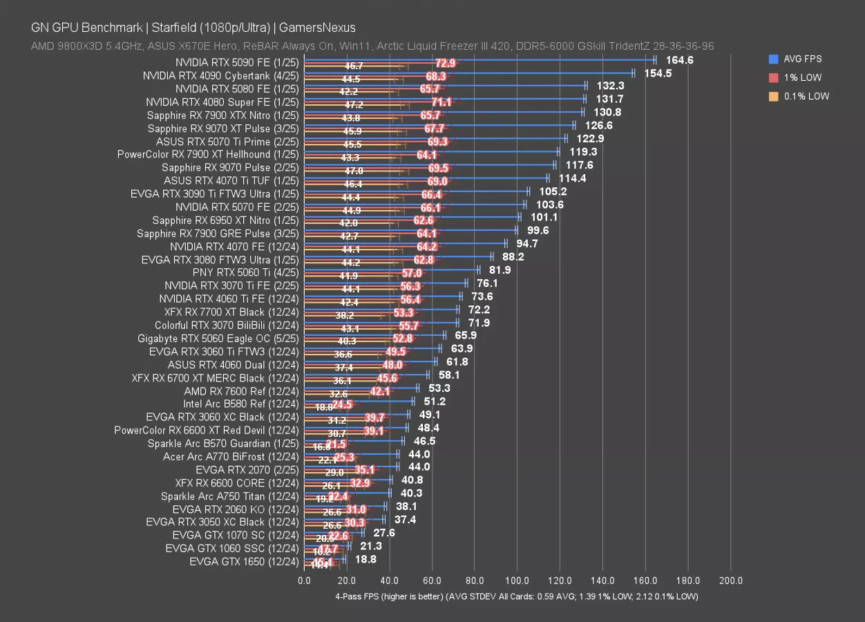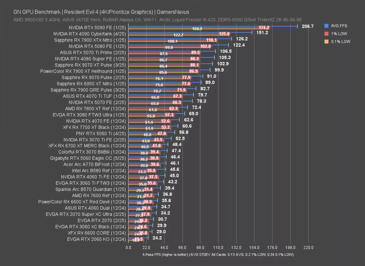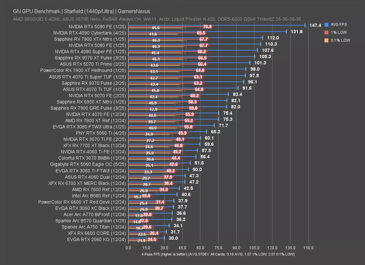 Final Fantasy 14: Dawntrail is up now, first at 4K. This particular set of tests is a weaker showing for the AMD RX 90 series, as we’ve shown in the 9070 XT review and 9070 review. NVIDIA is mostly competing against itself.