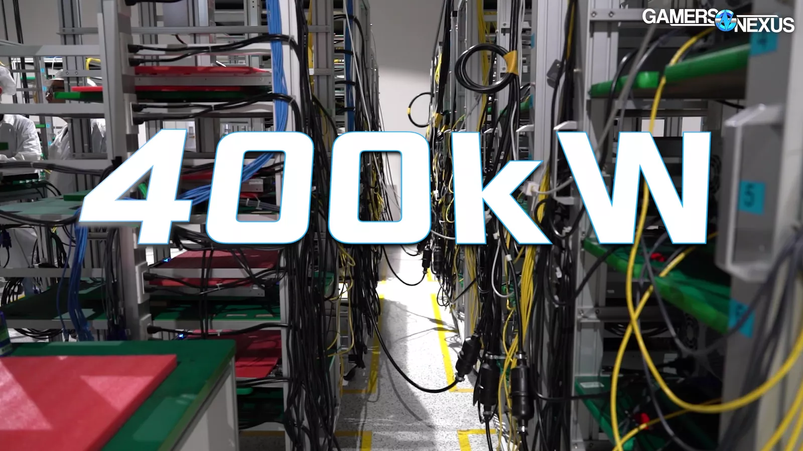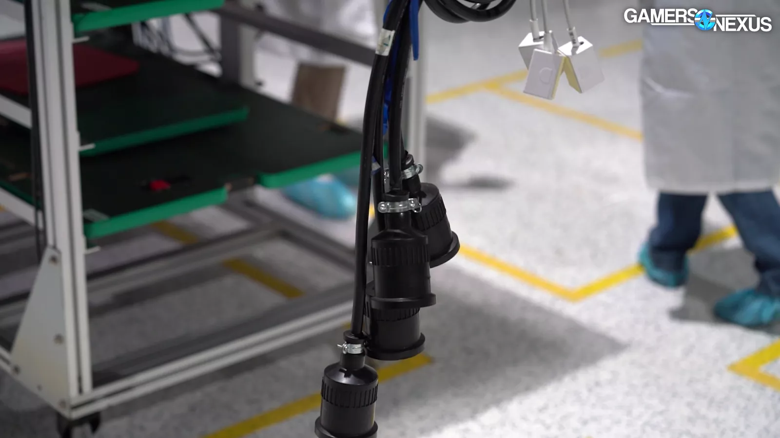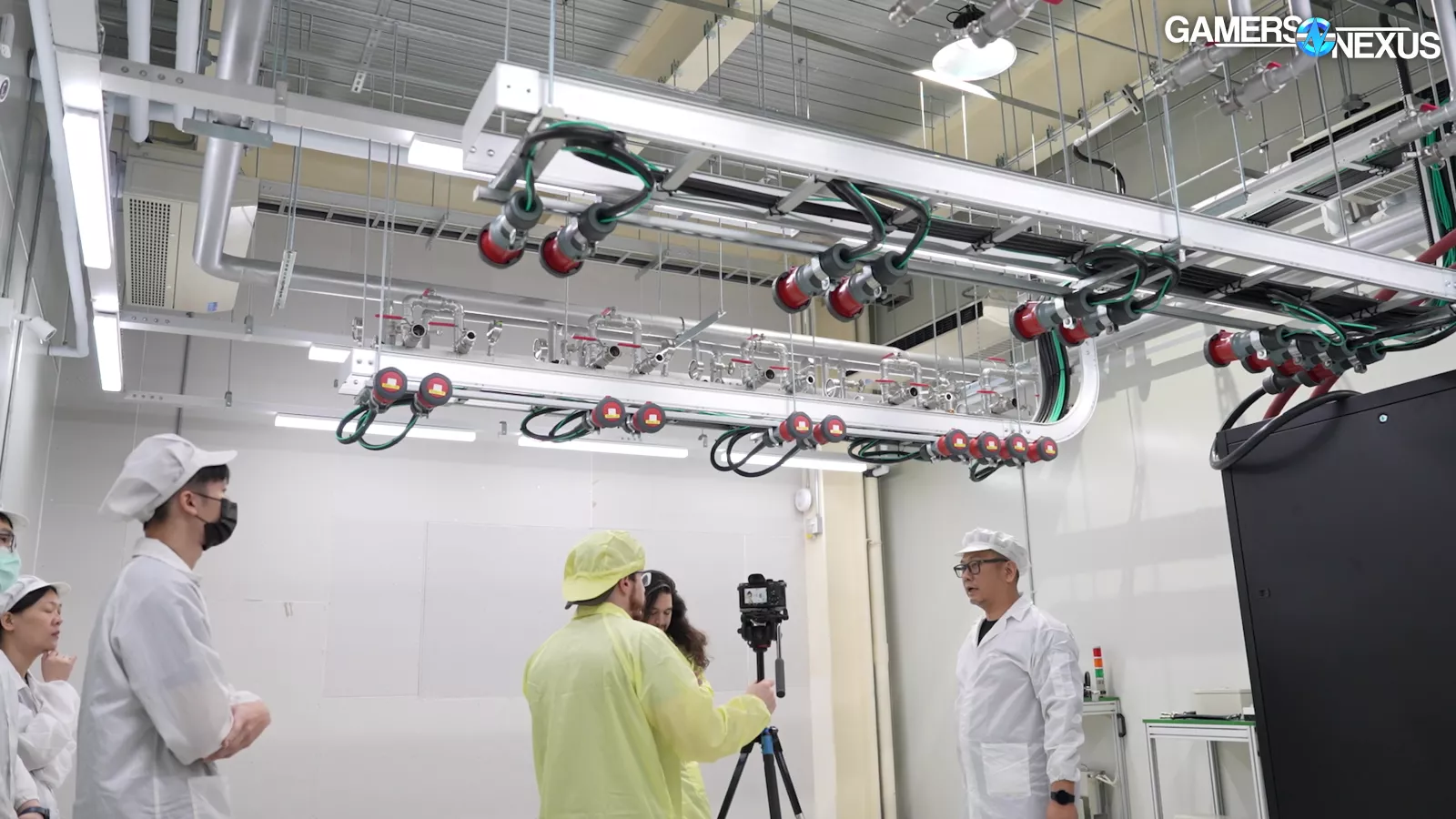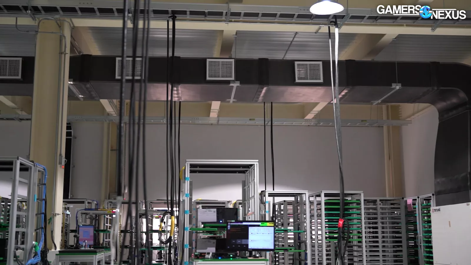 Up to 800 1U servers get burned in just in this room alone. As for its power capabilities, the room is equipped with 80 total test lines, each capable of delivering 5,000W. The total power handling capacity of the testing floor for the factory is a staggering 400kW.
