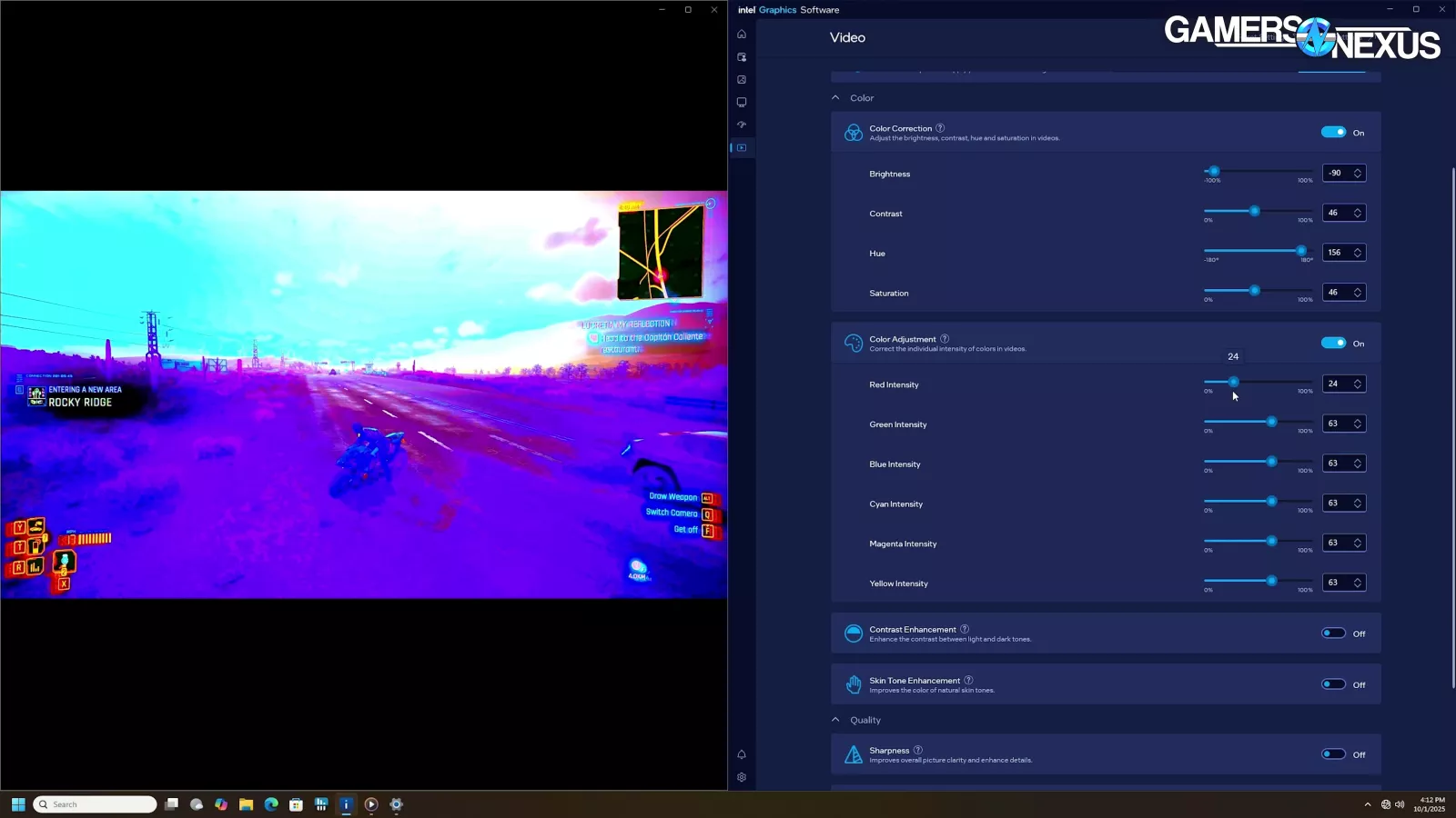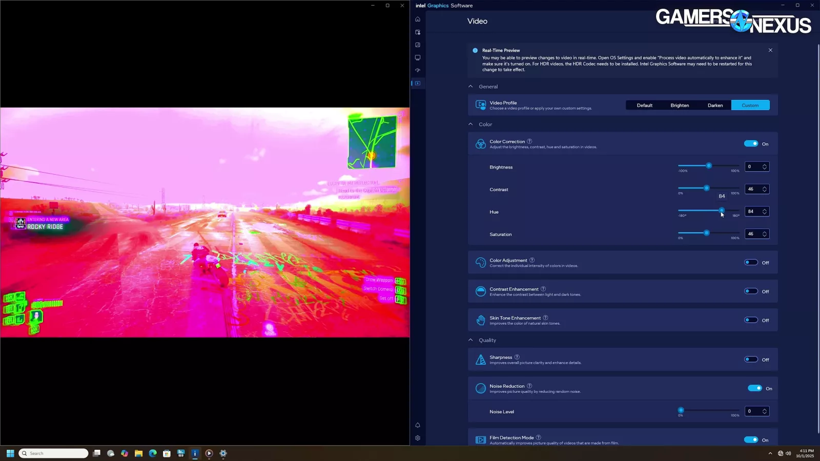 In general, most things appeared to work correctly. For example, the video adjustments panel is so extensive that you can make Cyberpunk look like the image above if you really want to.