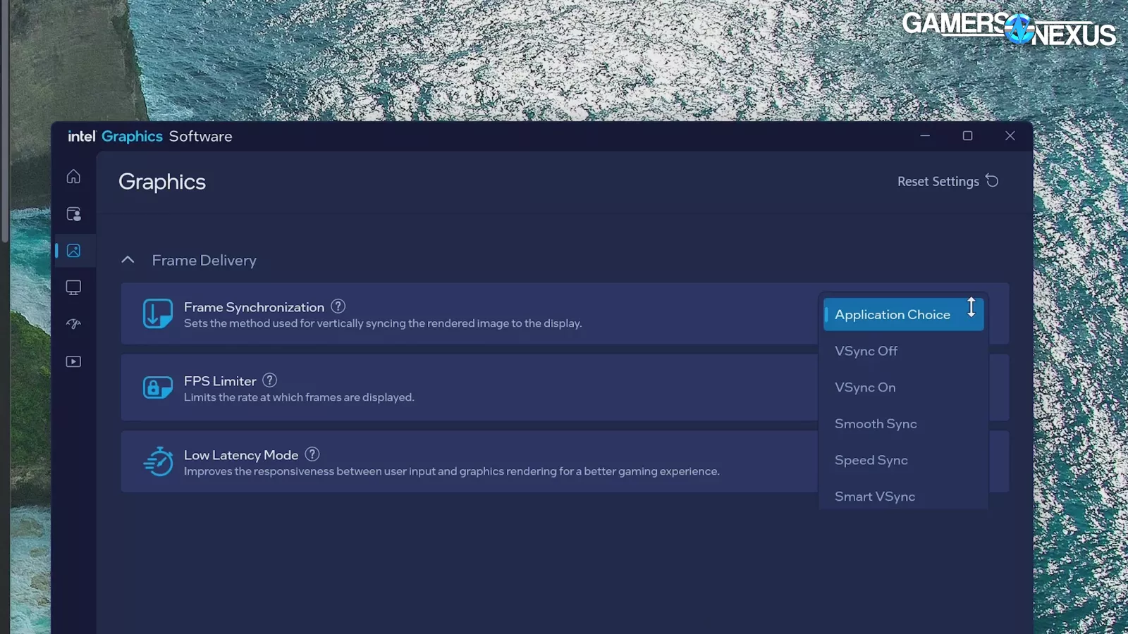 Intel’s inconsistency comes back into play with Smart VSync, which is intended to only turn on when the game’s frame rate exceeds the monitor’s refresh rate. It worked reliably when changing the setting prior to launching the game, but only worked one single time when we changed it while the game was still running; after that, it no longer functioned in this order or way, contributing to the overall confusion caused by Intel’s inconsistent driver behavior.