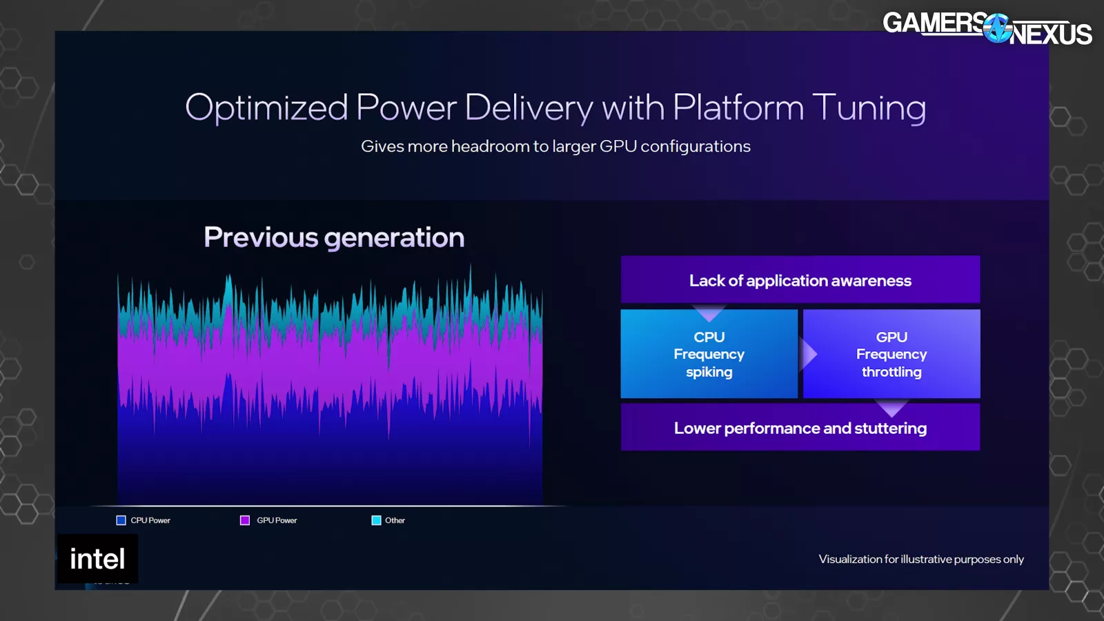 Intel noted that previously, a lack of application awareness meant that the device could sometimes divert too much power to the CPU, leaving the GPU bottlenecked on its power limit while the CPU offered a level of performance that wasn’t being kept-up with by the GPU.