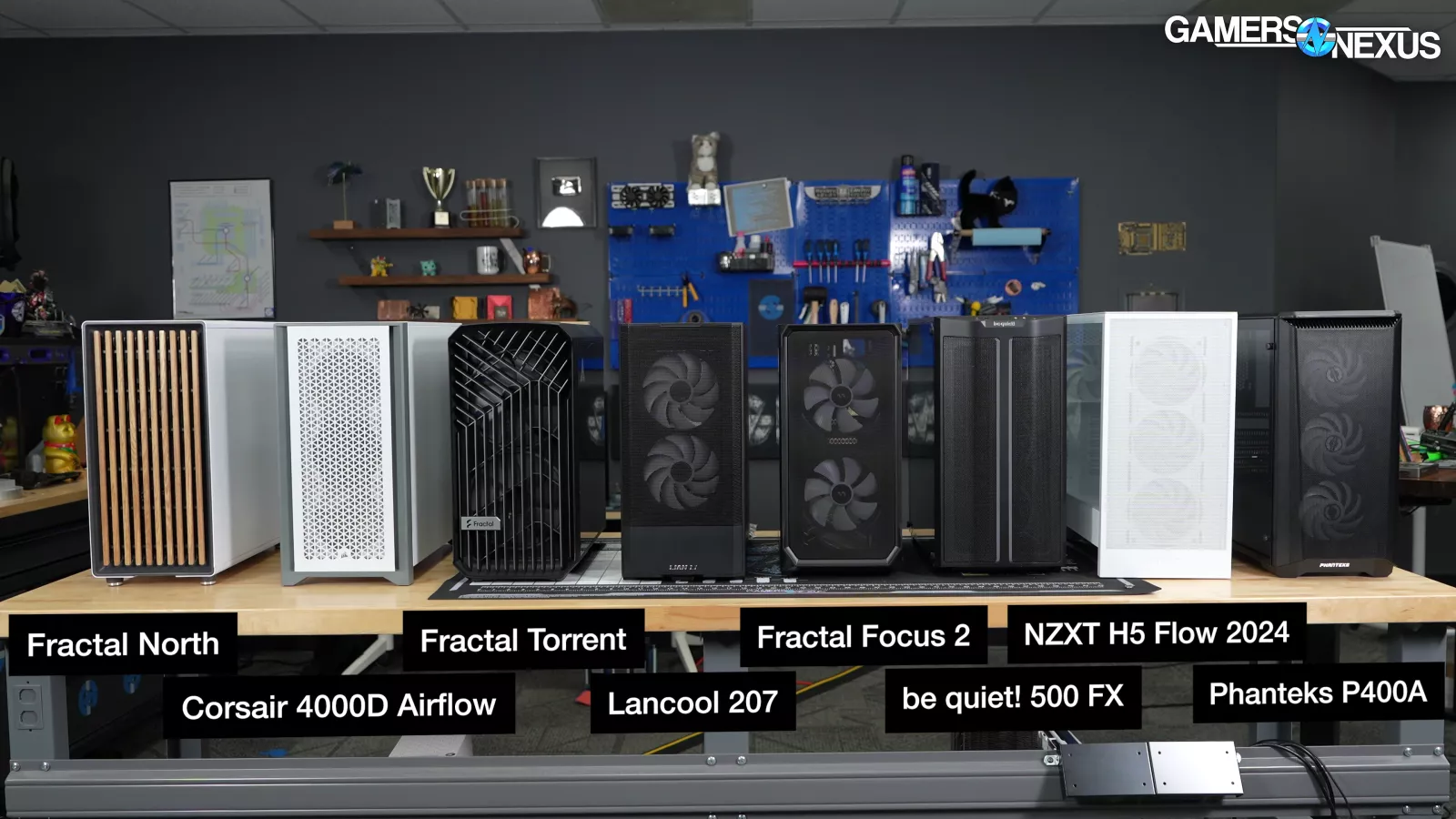 The Lian Li Lancool 207 is the new best-performing case on our thermal charts -- and it’s $80. The case shoves the power supply to the front to accommodate 2 shroud-top fans that are closer to the floor of the case, providing intake directly into the GPU. The front of the case has a shaped front inlet for 2x 140mm fans cooling the rest, and the back is entirely ventilation to allow exhaust.