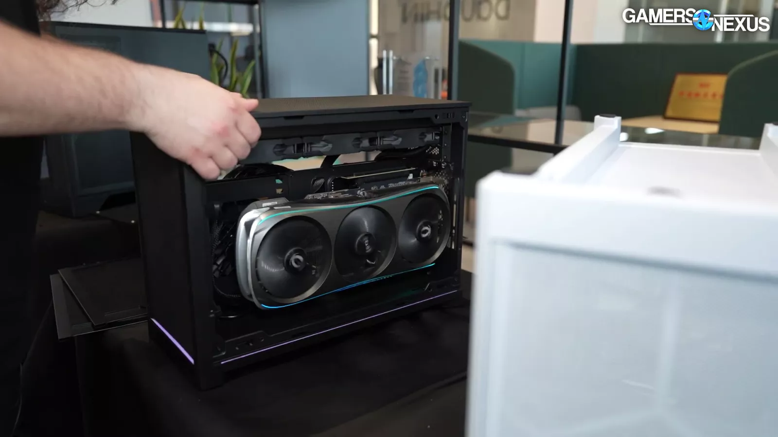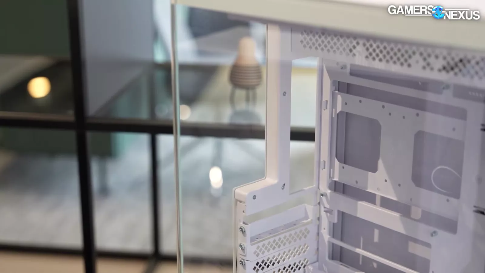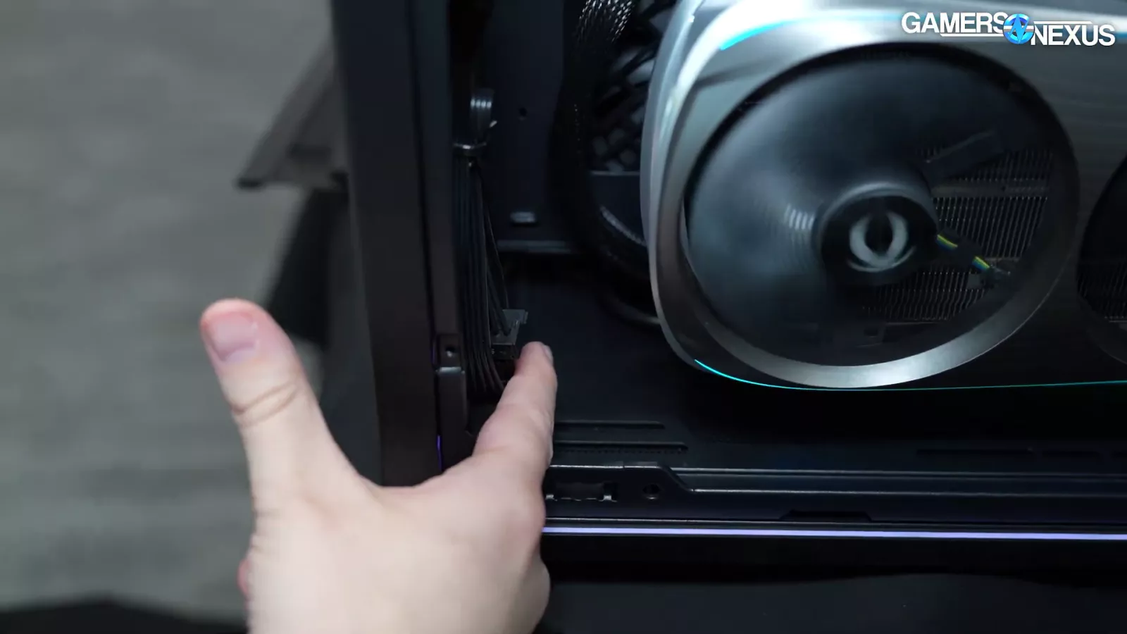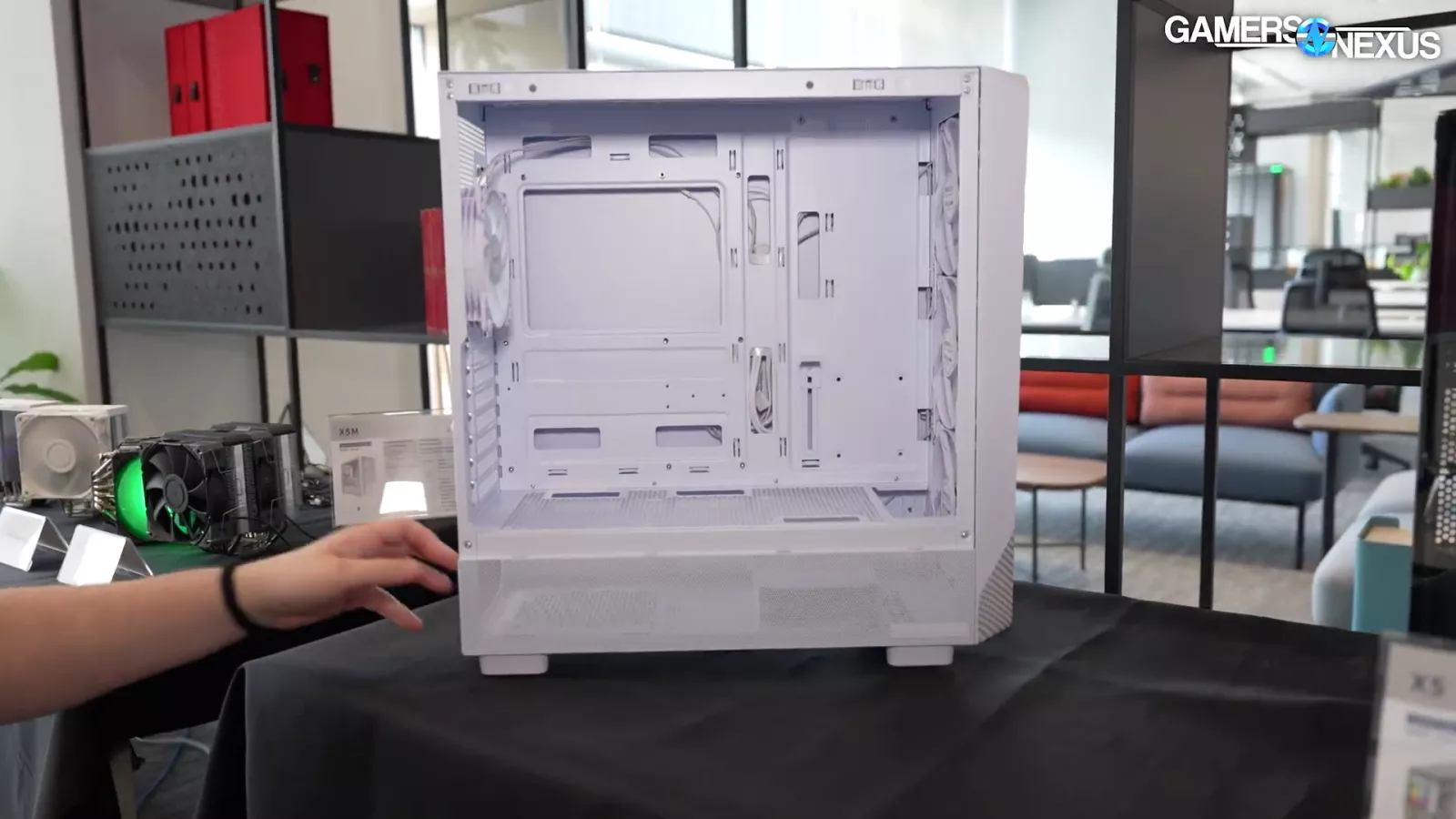 One thing worth pointing out is that its bottom fans are sunken into the bottom, which means they’re pretty close to the floor and the intake is primarily relegated to the back side panel of the case, where there’s a bit of an angle which should help with intake a little, but it’s still somewhat boxed in.