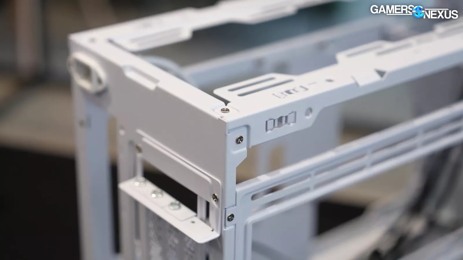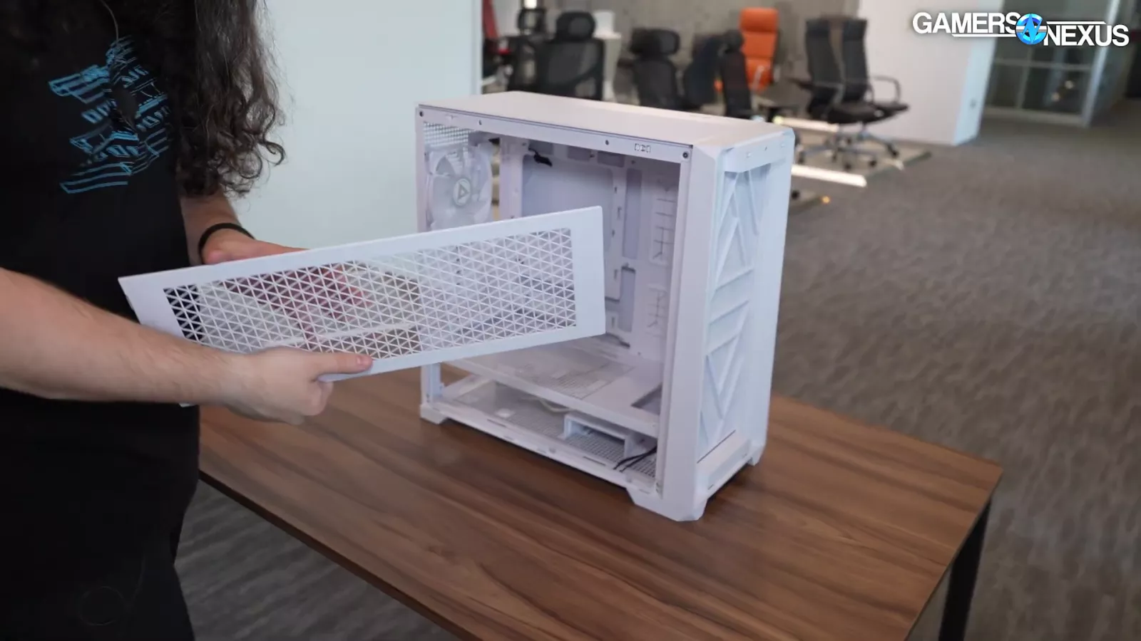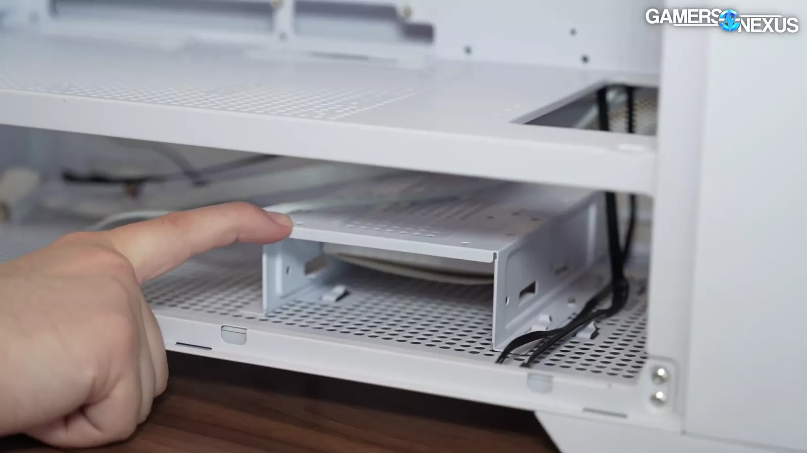 Overall, we have some critiques to the case, but it's finalized. The biggest ones we have for this case include the aforementioned side-panel ventilation and the fact that when the fans are oriented towards the front bottom of the case, the drive cages underneath end up blocking potential air intake from underneath the chassis, but then again, there’s not a lot of space for air to come in through the bottom to begin with. As a result, the bottom fans don’t have much access to intake aside from small ventilated areas.