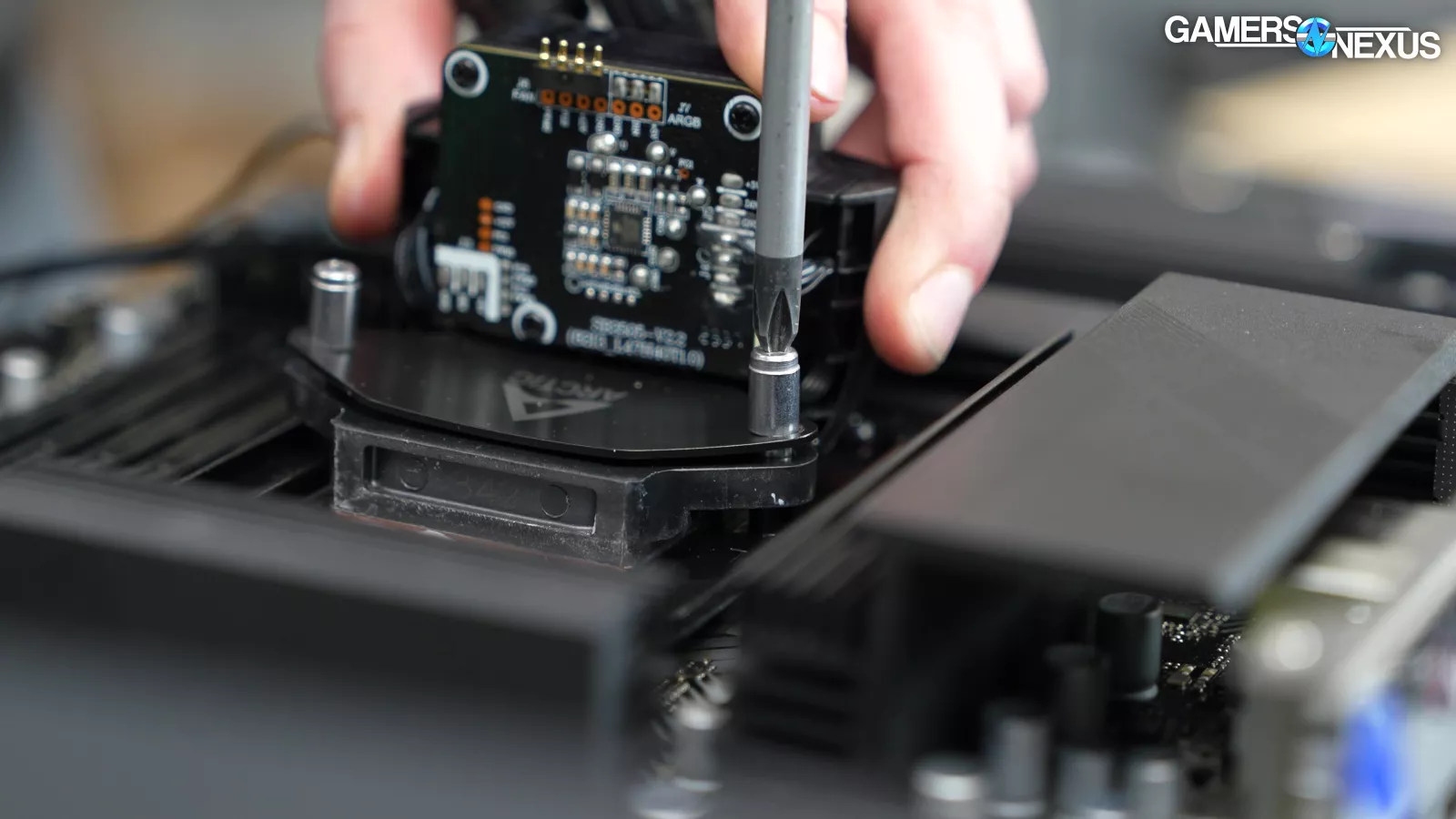 In theory, making the frame and being in control of the cold plate, which they are, should make for the best possible pressure and contact distribution across an IHS that you could get. If you buy a solution from Thermal Grizzly or Thermalright, they're just selling you the frame, so being able to mate the cold plate to a particular frame is a strength that the others don't currently have. It's something we hope that Arctic is able to leverage properly. Spoiler alert: It's not perfect.