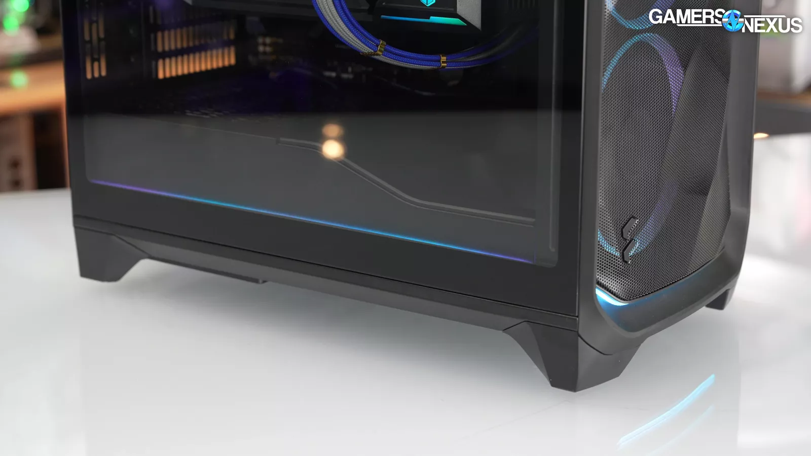 As for the $220 Ambience Pro RGB, it's basically a $60-$80 upcharge for lighting, but we really like that lighting. That is, however, a big price jump. If you're considering the Ambience Pro RGB with the extra cost for the lighting, you should be comparing it to other flagship showy cases like the HAVN HS420 (read our review) or HYTE Y70 (read our review) (if you can buy one as they can be difficult to find in the US due to the tariffs). You should also look through Fractal's documentation carefully to make sure you like the RGB ecosystem of software and connectors before you commit.