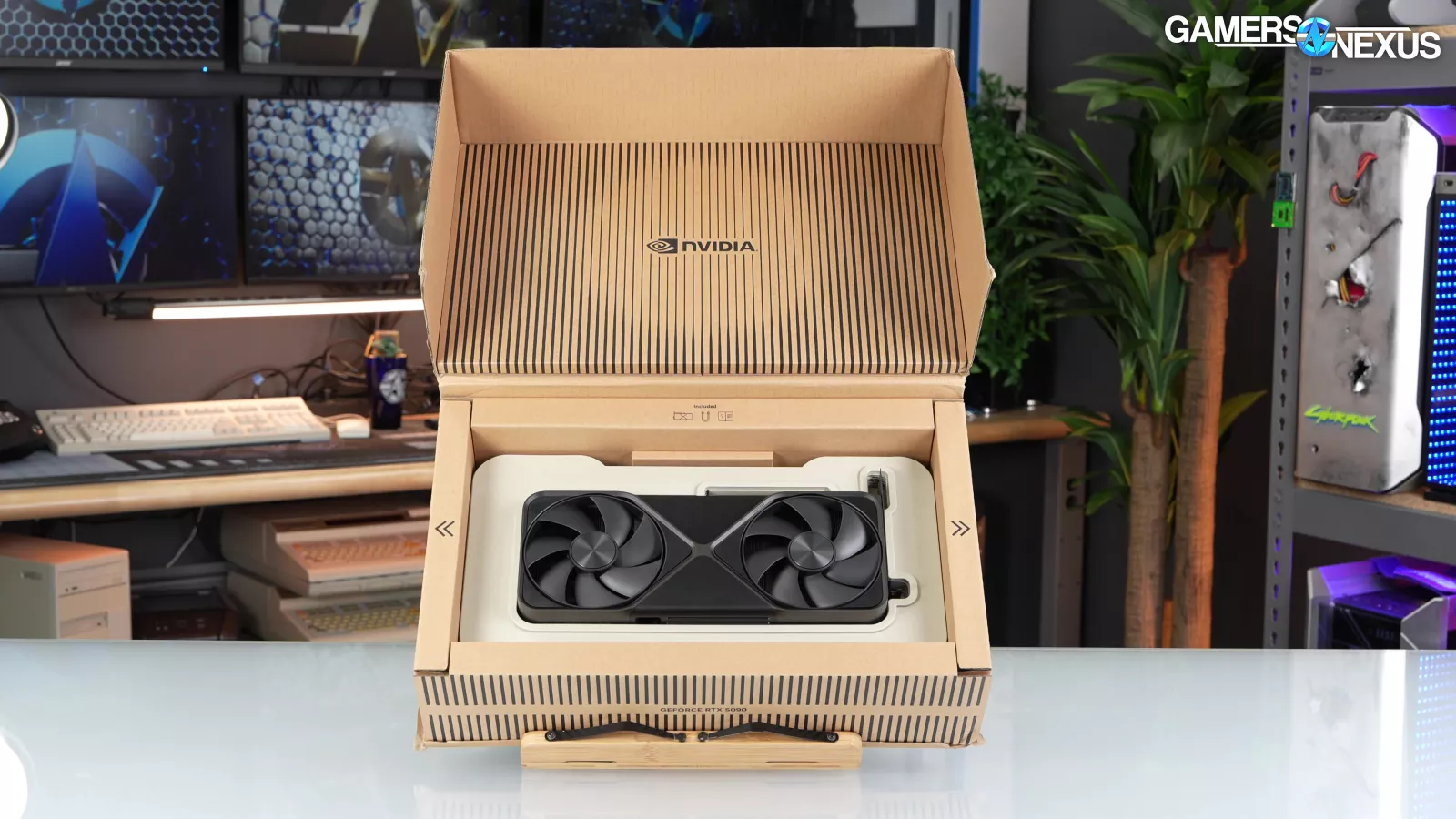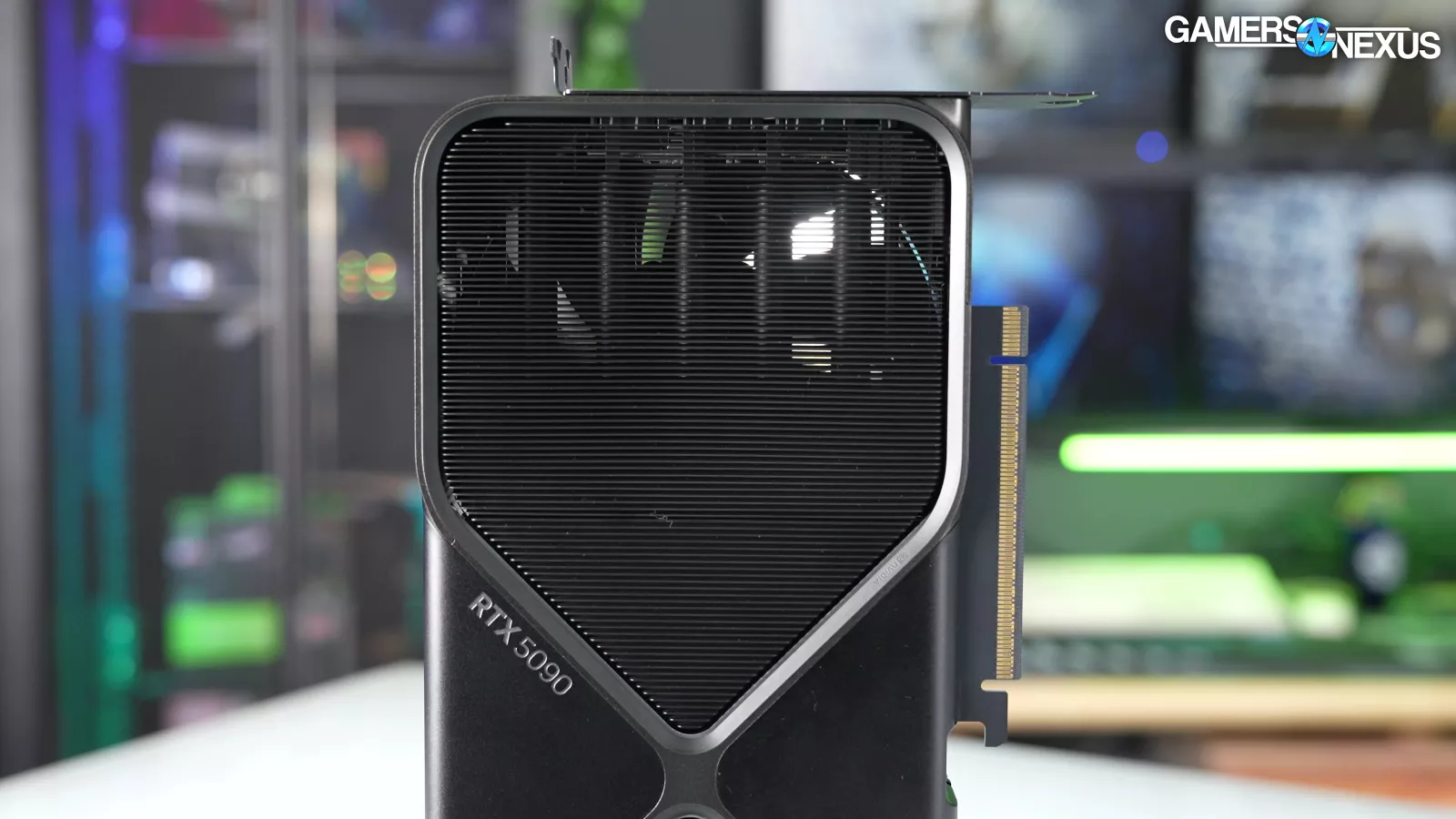 This is a big review, we’ll respect your time: The short version of the review of the RTX 5090 Founders Edition is that the thermal solution is surprisingly good for GPU thermals, if a bit warm for memory thermals, the rasterization gaming uplift at 4K over the RTX 4090 (watch our review) is anywhere from 20% to 50% (depending on the game), ray tracing at 4K is commonly around 27% to 35% uplift over the 4090, and performance improvement at resolutions like 1440p and 1080p see lower improvements. An additional storyline to this review is that the 9800X3D (read our review) remains completely insane in the best ways, because it was able to keep up even at 1080p without major bottlenecking in some benchmarks.