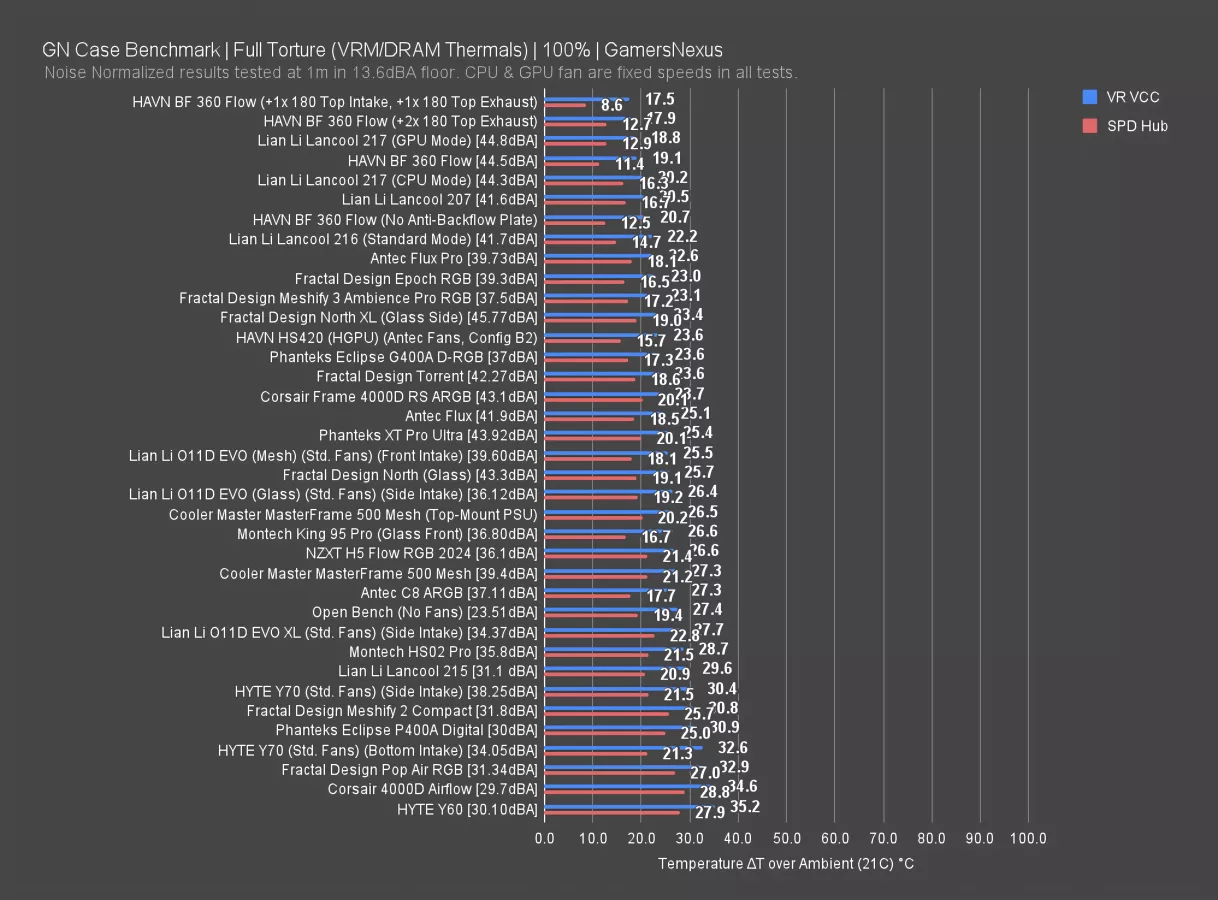 Before we get to noise-normalized testing, let’s start with full speed testing to better evaluate alternate case configurations at full speed.