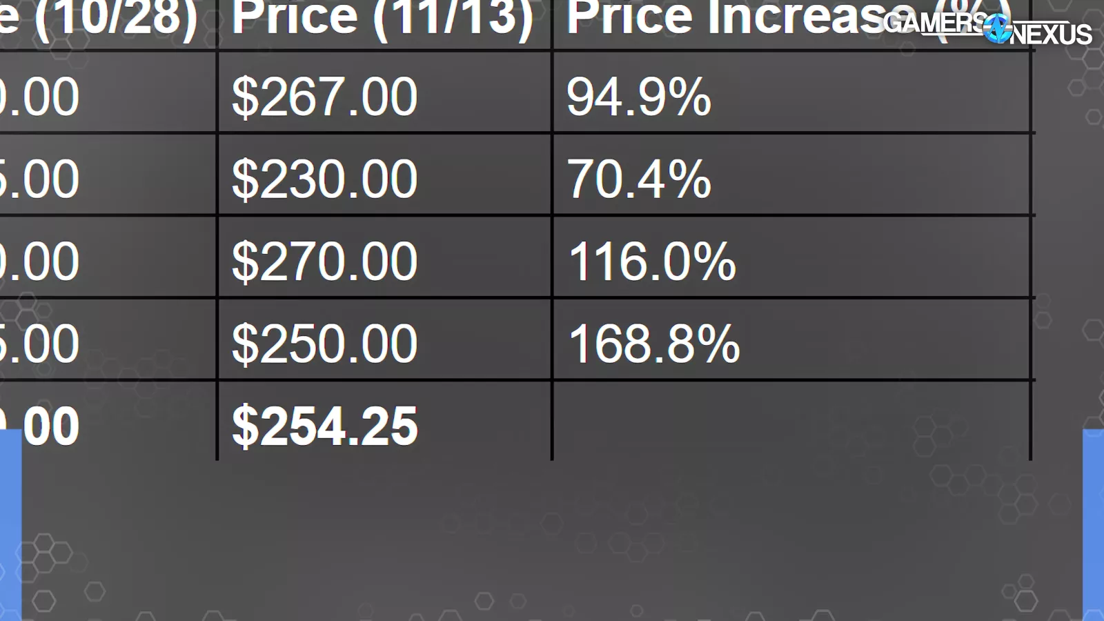 TeamGroup’s T-Create Expert kit more than doubled in price, from $93 in September to $250 by the end of October. This is a 169% increase in a span of a little over a month. Just since October 28th, we’ve seen a 16% increase in price (from $215 to $250).