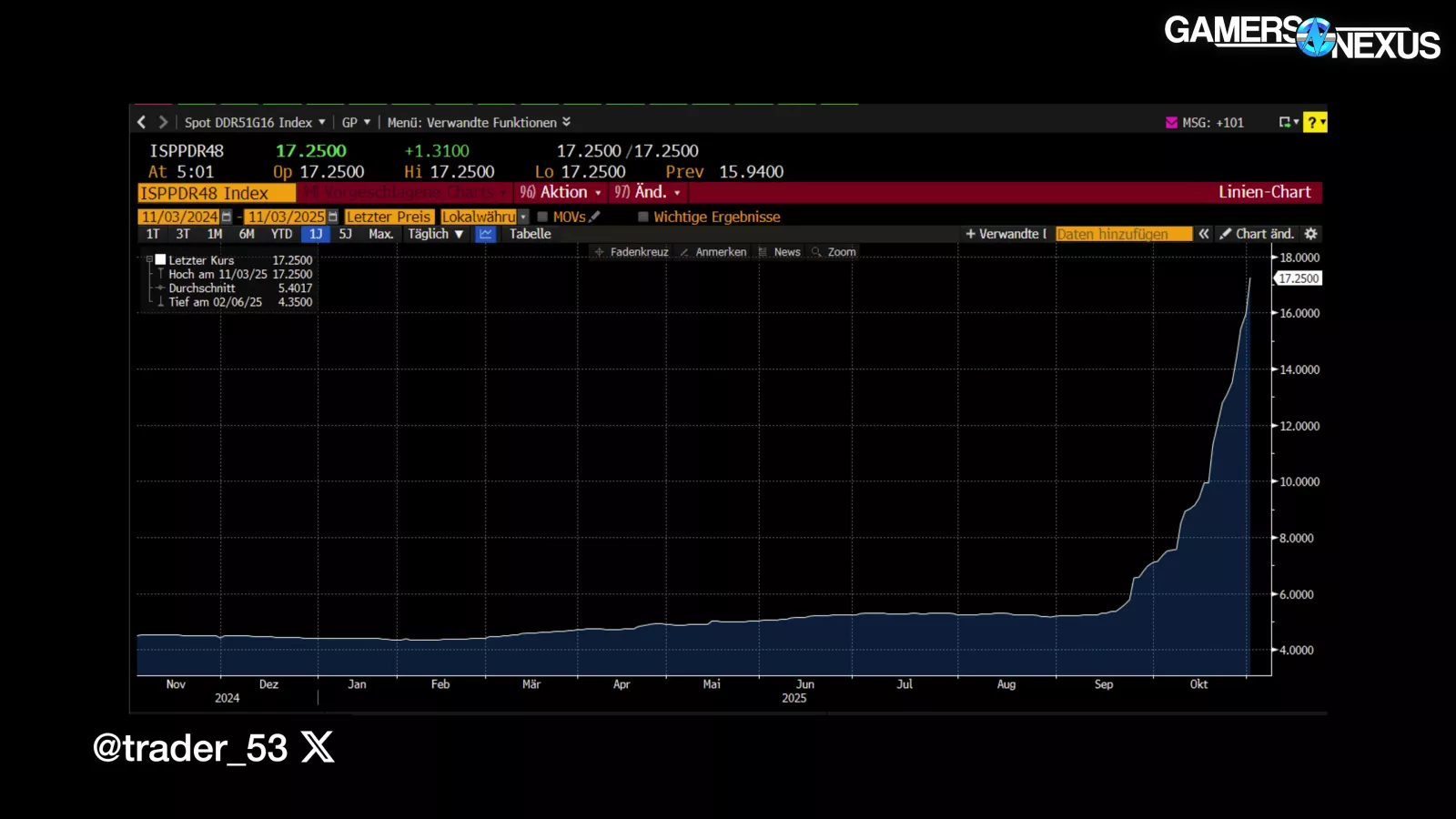 So to quickly recap: DDR4 and DDR5 pricing has nearly doubled within the past few months. AI infrastructure and cloud service providers have driven demand to unprecedented levels. Manufacturers had been cutting supply to deal with the effects from the COVID overstock, leaving them unprepared for the sudden demand.