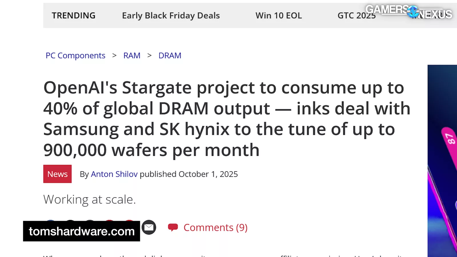 In OpenAI’s partnership announcement with Samsung and SK Hynix, the company described plans to target “900,000 DRAM wafer starts per month,” which Tom’s Hardware notes represents around 40% of the total DRAM output, globally.