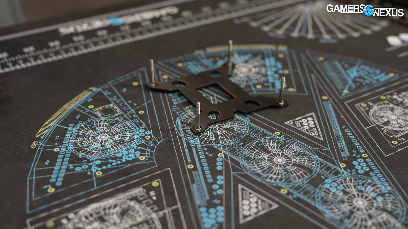 From here, install the mounting brackets, ensuring that they’re laid out in the correct position for your CPU (We used the middle position for LGA 1700), and secure them with 4 nuts.